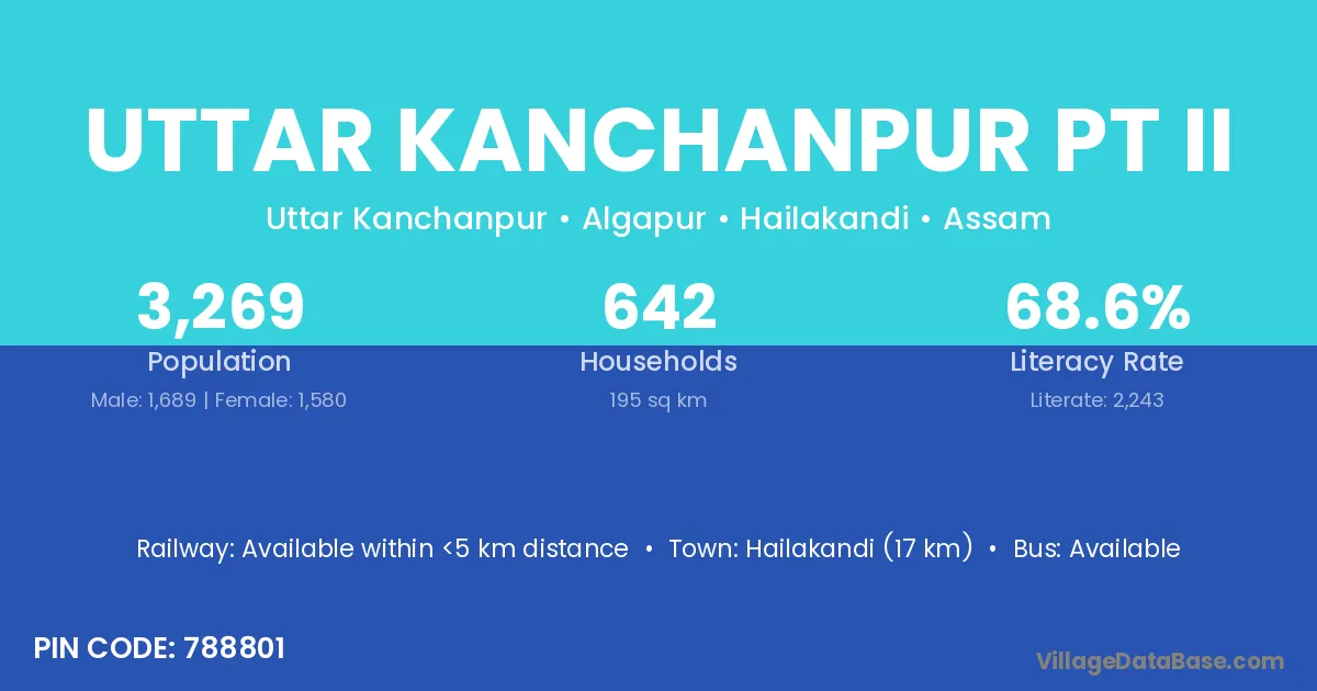 Hailakandi (17 km) is the nearest town to Uttar Kanchanpur Pt Ii village for major economic activities and is located approximately 17 km away.