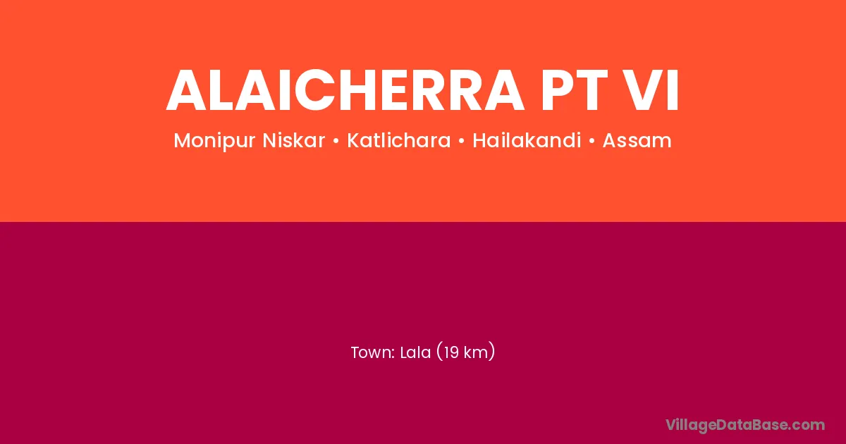 Lala (19 km) is the nearest town to Alaicherra Pt Vi village for major economic activities and is located approximately 19 km away.