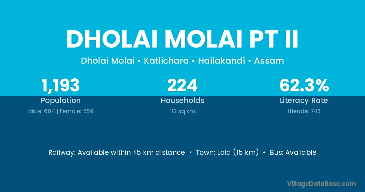 Dholai Molai Pt Ii village has a total population of 1,193 people, of which 604 are males and 589 are females.