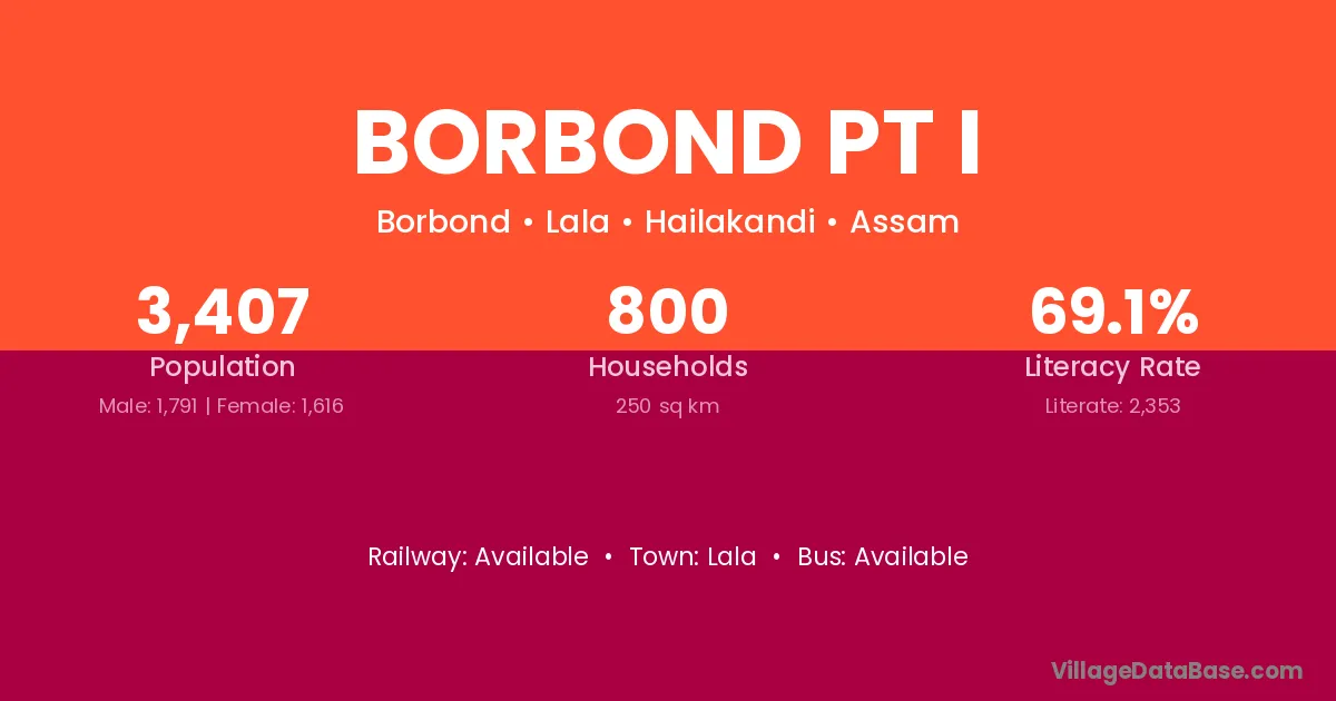 Lala is the nearest town to Borbond Pt I village for major economic activities