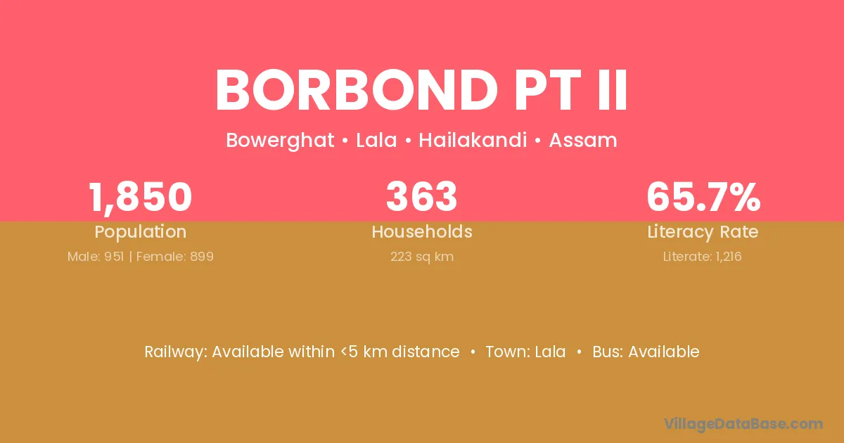 Borbond Pt Ii village is located in the Lala Subdivision of the Hailakandi district in Assam .