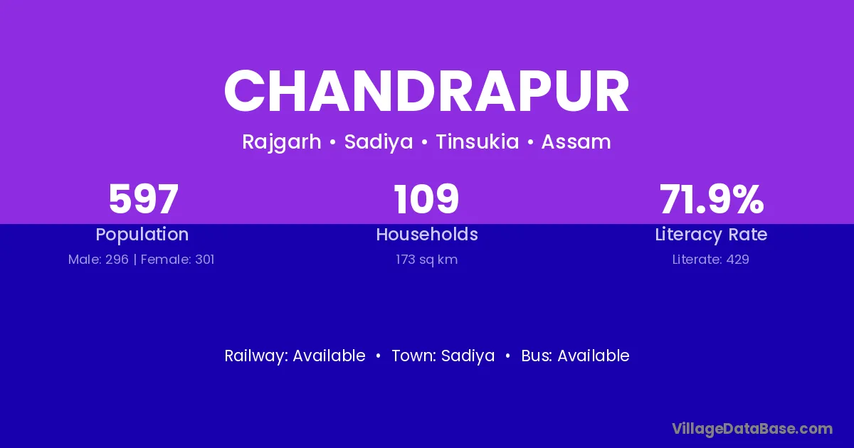 Hailakandi (8 km) is the nearest town to Chandrapur village for major economic activities and is located approximately 8 km away.