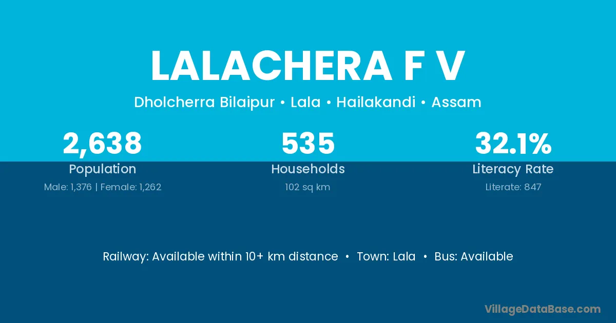 Lalachera F V village has a total population of 2,638 people, of which 1,376 are males and 1,262 are females.