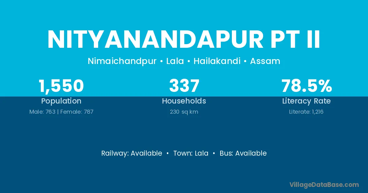 Nityanandapur Pt Ii village has a total population of 1,550 people, of which 763 are males and 787 are females.