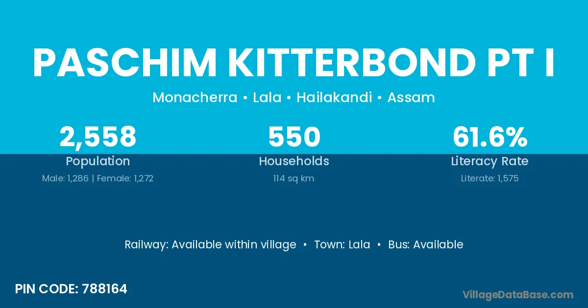 Paschim Kitterbond Pt I village is located in the Lala Subdivision of the Hailakandi district in Assam .