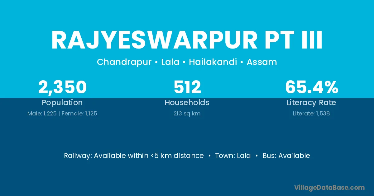 Rajyeswarpur Pt Iii village is located in the Lala Subdivision of the Hailakandi district in Assam .