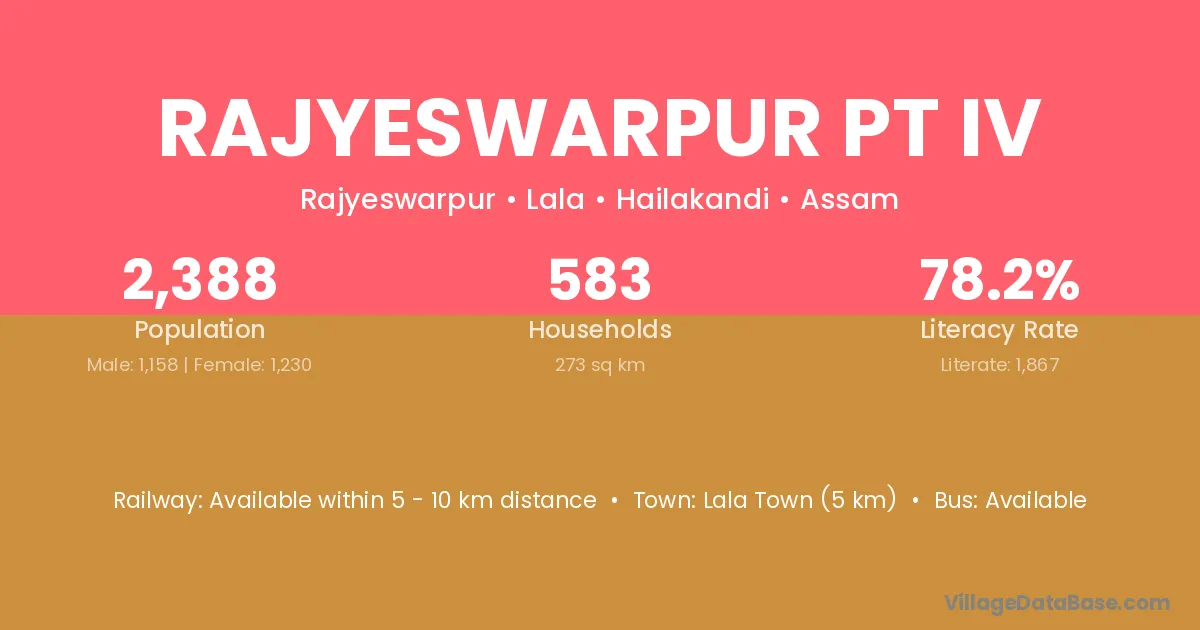 Rajyeswarpur Pt Iv village is located in the Lala Subdivision of the Hailakandi district in Assam .