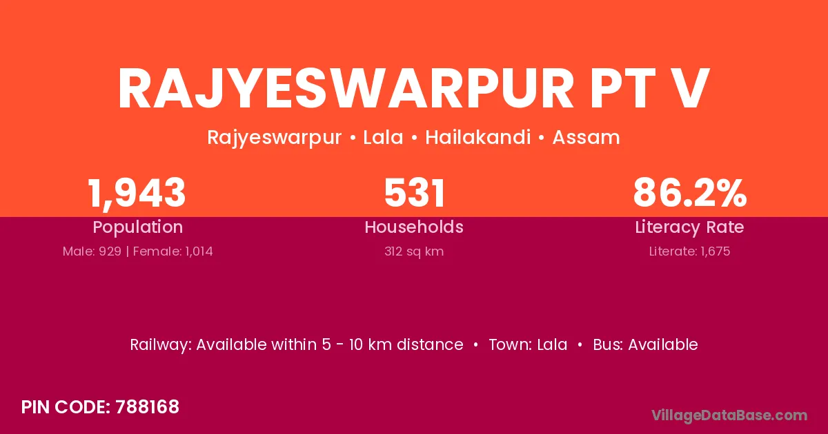 Rajyeswarpur Pt V village is located in the Lala Subdivision of the Hailakandi district in Assam .