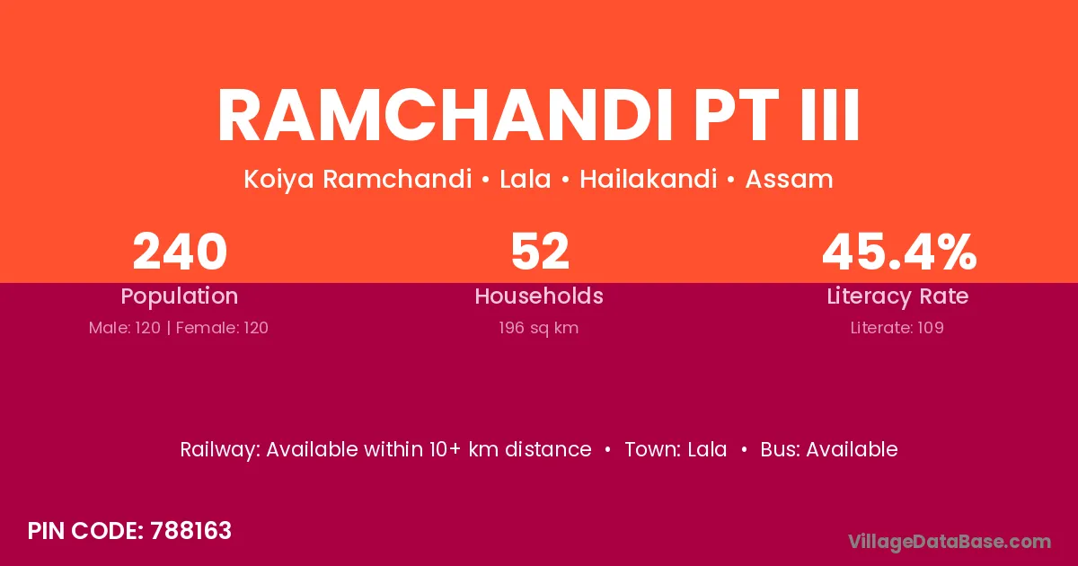 Ramchandi Pt Iii village has a total population of 240 people, of which 120 are males and 120 are females.