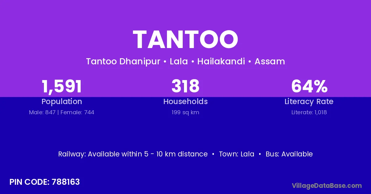Tantoo village is located in the Lala Subdivision of the Hailakandi district in Assam .
