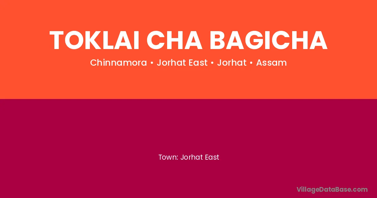 Jorhat East is the nearest town to Toklai Cha Bagicha village for major economic activities