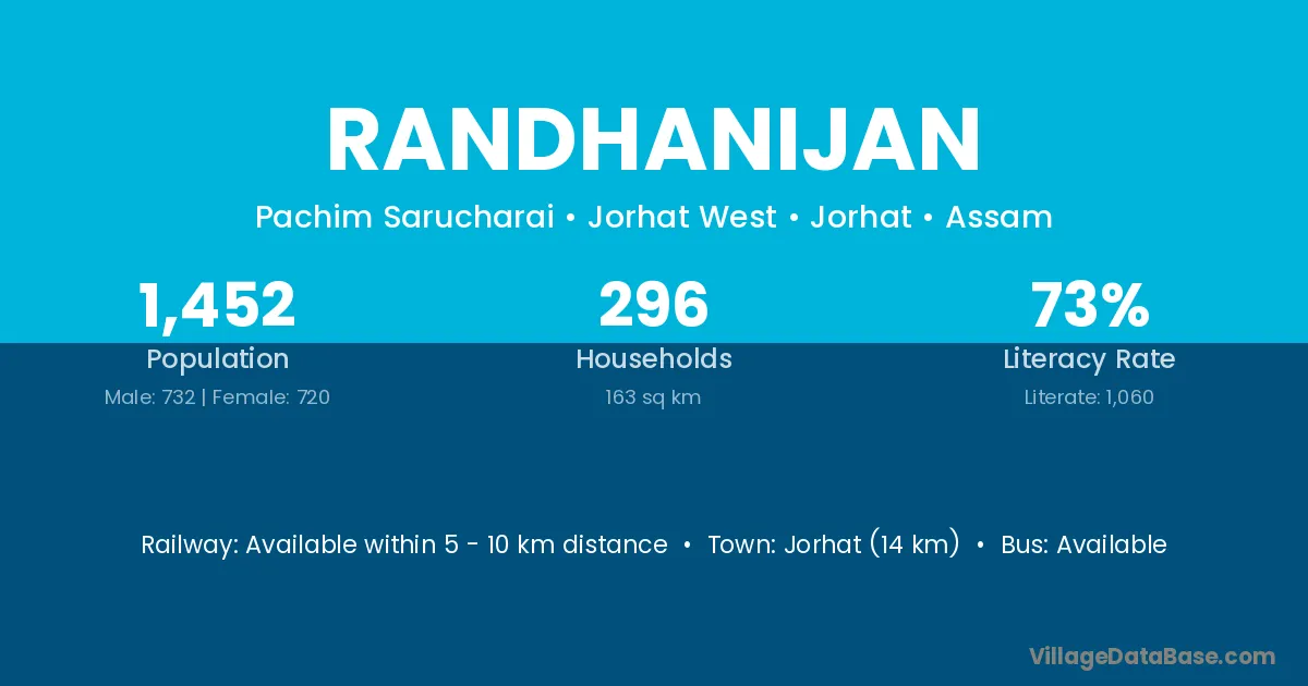 Jorhat (14 km) is the nearest town to Randhanijan village for major economic activities and is located approximately 14 km away.