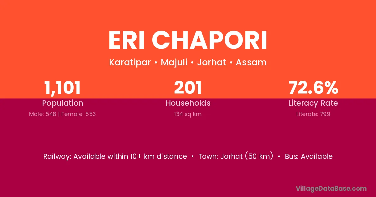 Eri Chapori village has a total population of 1,101 people, of which 548 are males and 553 are females.