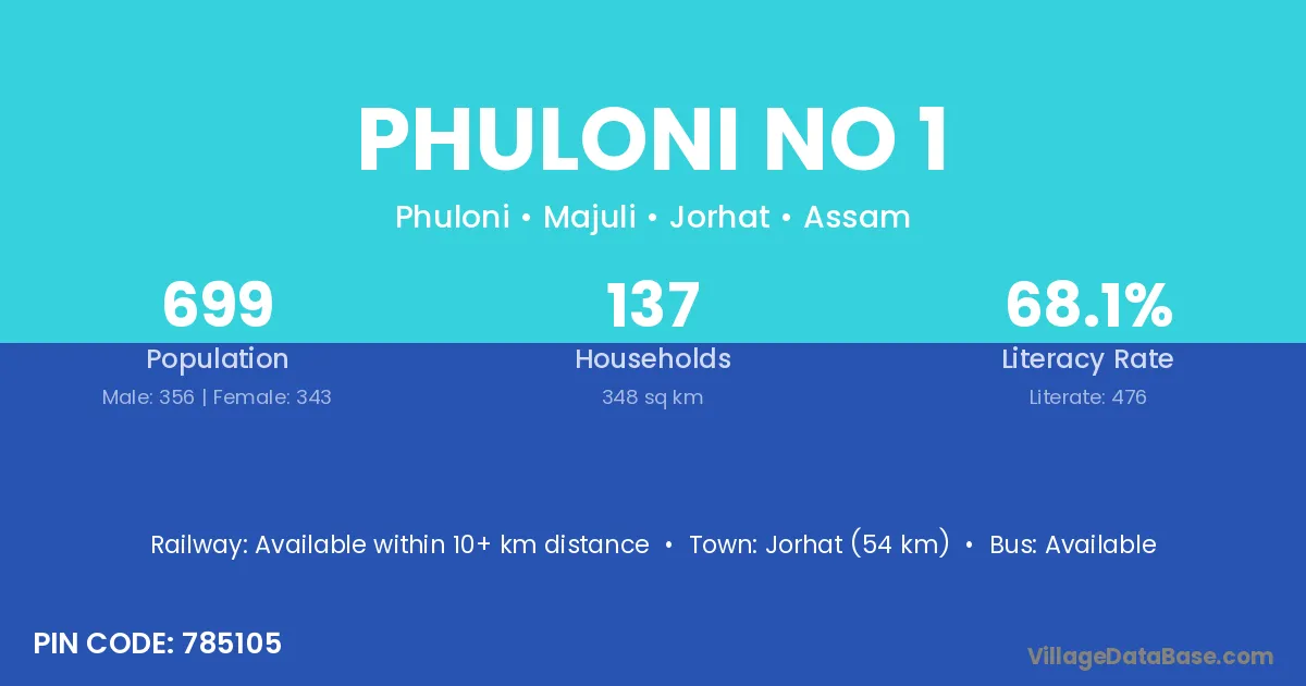 Phuloni No 1 village has a total population of 699 people, of which 356 are males and 343 are females.