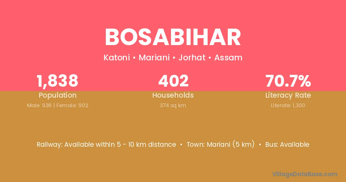 Mariani (5 km) is the nearest town to Bosabihar village for major economic activities and is located approximately 5 km away.