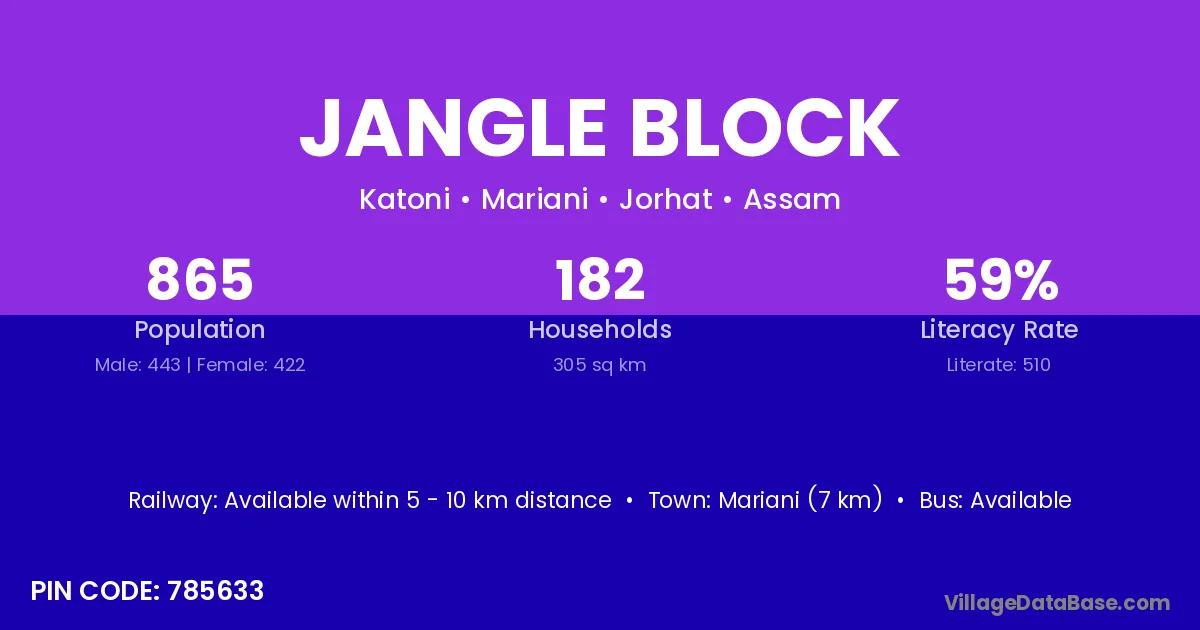 Mariani (7 km) is the nearest town to Jangle Block village for major economic activities and is located approximately 7 km away.