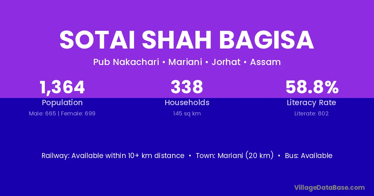 Sotai Shah Bagisa village is located in the Mariani Subdivision of the Jorhat district in Assam .