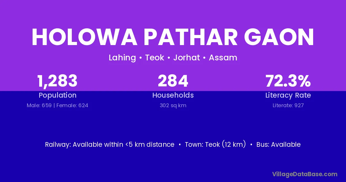 Holowa Pathar Gaon village has a total population of 1,283 people, of which 659 are males and 624 are females.
