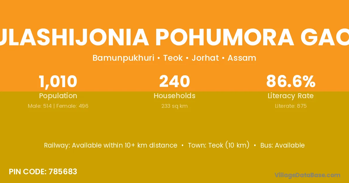 Tulashijonia Pohumora Gaon village has a total population of 1,010 people, of which 514 are males and 496 are females.