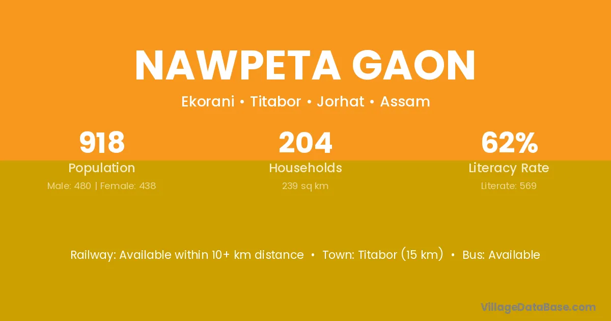 Nawpeta Gaon village has a total population of 918 people, of which 480 are males and 438 are females.
