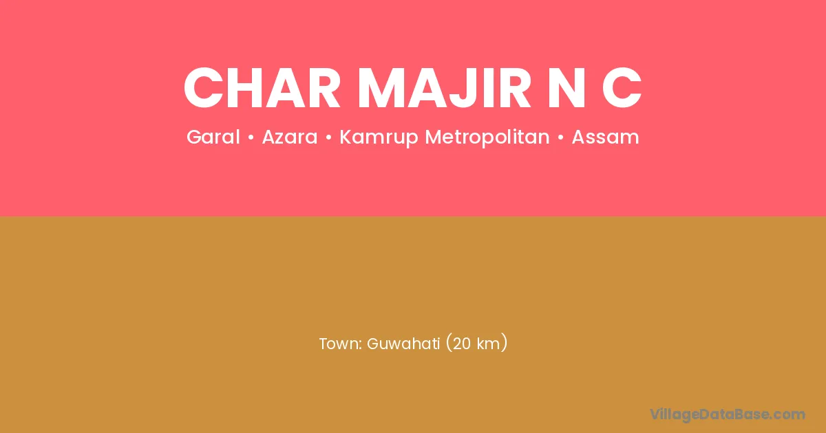 Guwahati (20 km) is the nearest town to Char Majir N C village for major economic activities and is located approximately 20 km away.