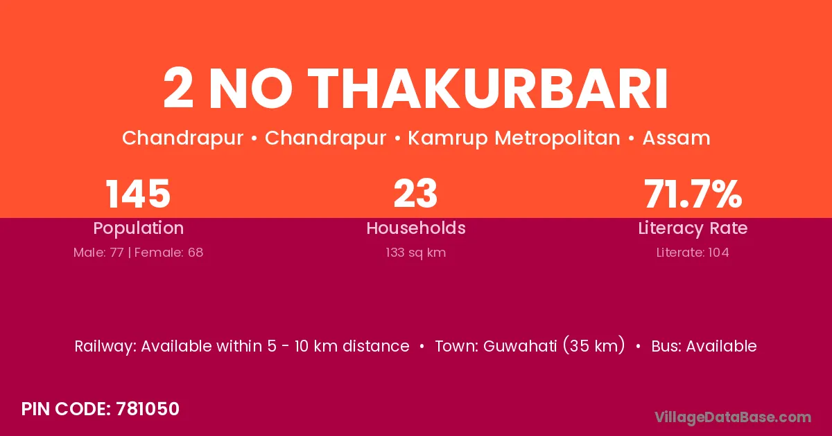 Guwahati (35 km) is the nearest town to 2 No Thakurbari village for major economic activities and is located approximately 35 km away.