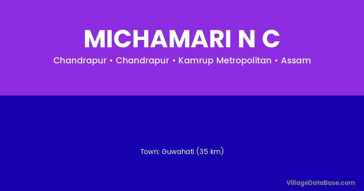Guwahati (35 km) is the nearest town to Michamari N C village for major economic activities and is located approximately 35 km away.