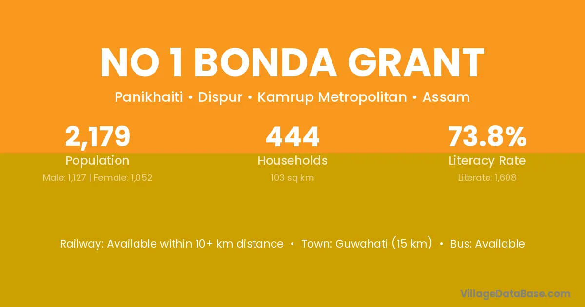 Guwahati (15 km) is the nearest town to No 1 Bonda Grant village for major economic activities and is located approximately 15 km away.