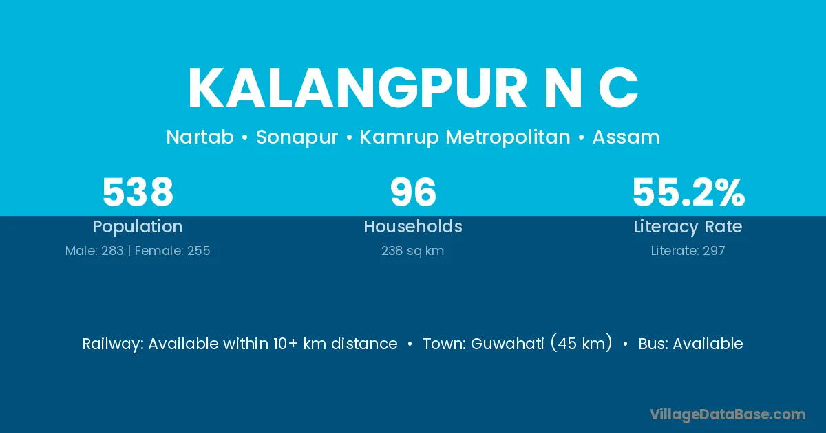 Guwahati (45 km) is the nearest town to Kalangpur N C village for major economic activities and is located approximately 45 km away.
