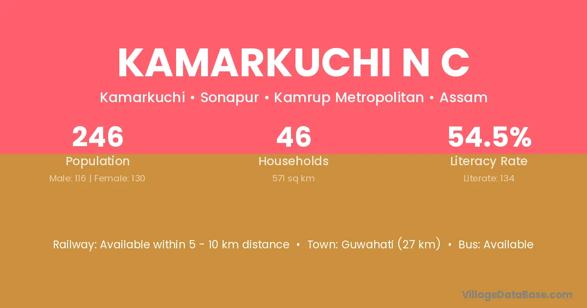 Kamarkuchi N C village has a total population of 246 people, of which 116 are males and 130 are females.