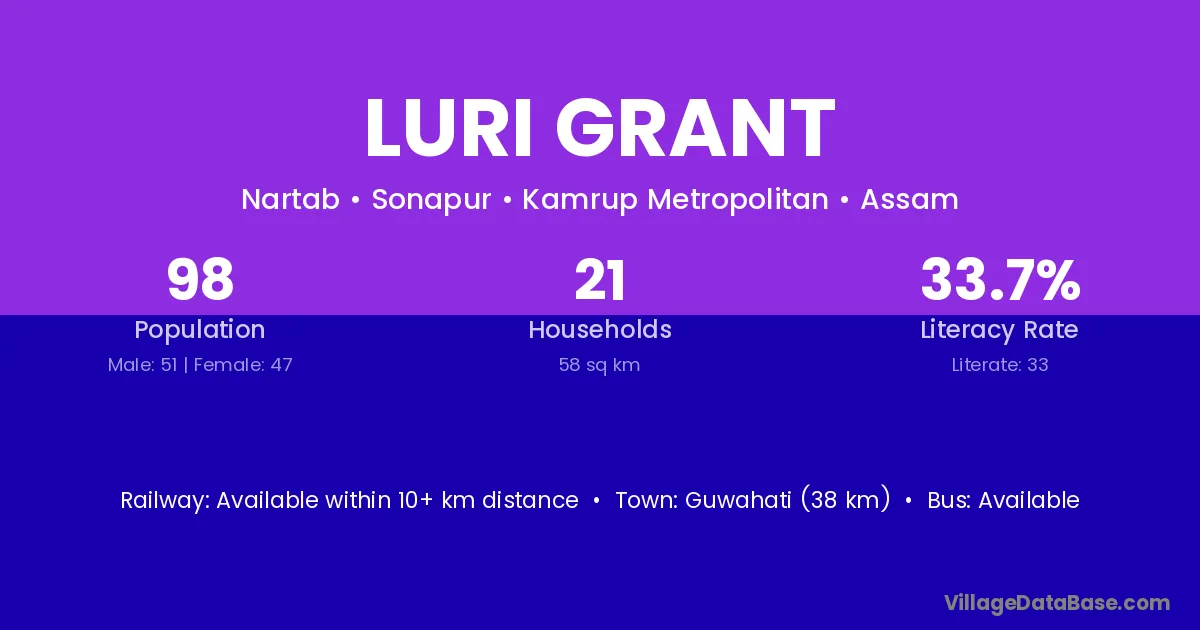 Guwahati (38 km) is the nearest town to Luri Grant village for major economic activities and is located approximately 38 km away.
