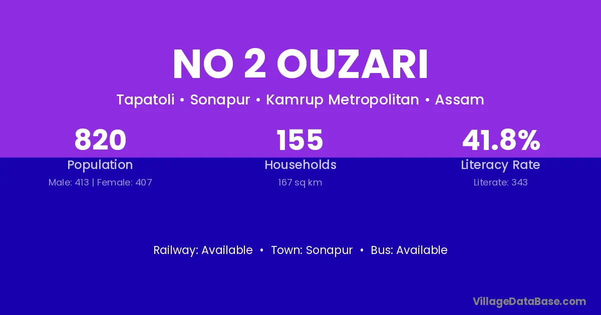No 2 Ouzari village has a total population of 820 people, of which 413 are males and 407 are females.