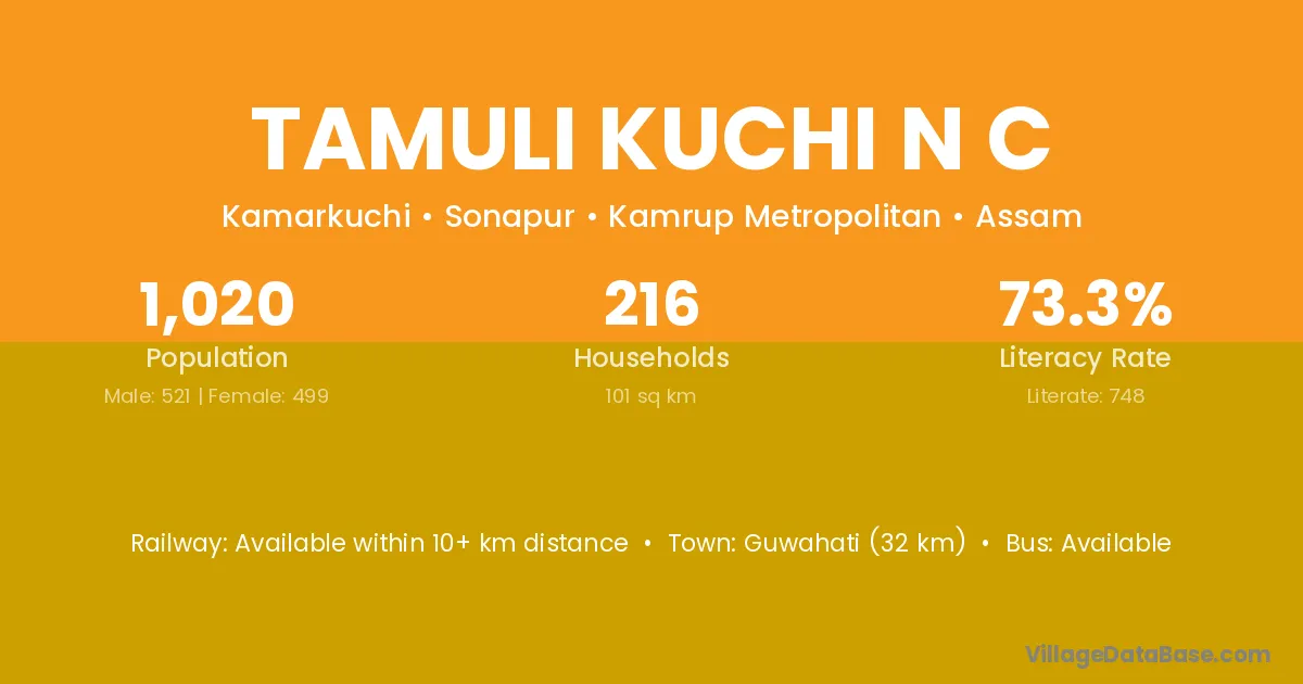 Tamuli Kuchi N C village has a total population of 1,020 people, of which 521 are males and 499 are females.