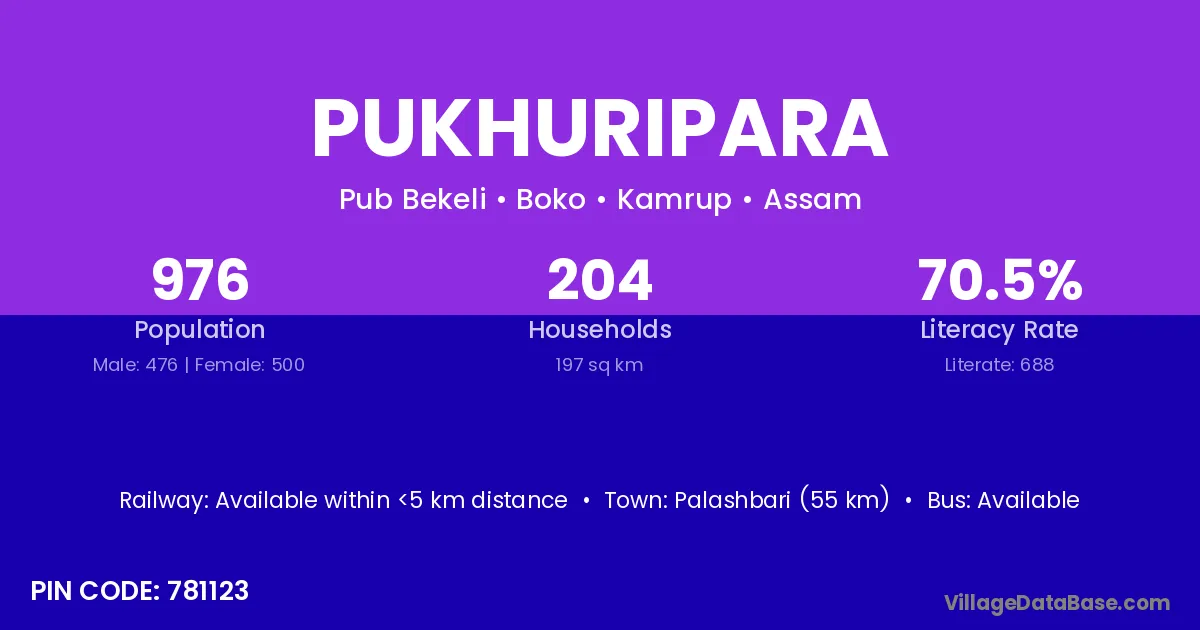 Palashbari (55 km) is the nearest town to Pukhuripara village for major economic activities and is located approximately 55 km away.