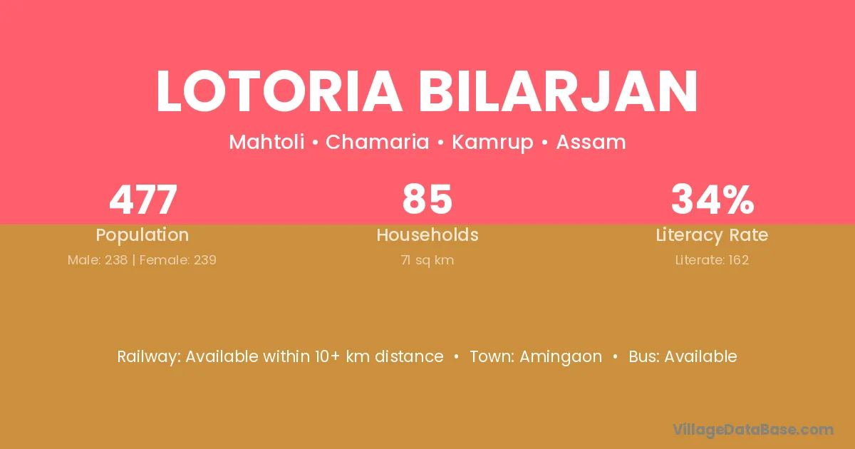 Lotoria Bilarjan village is located in the Chamaria Subdivision of the Kamrup district in Assam .