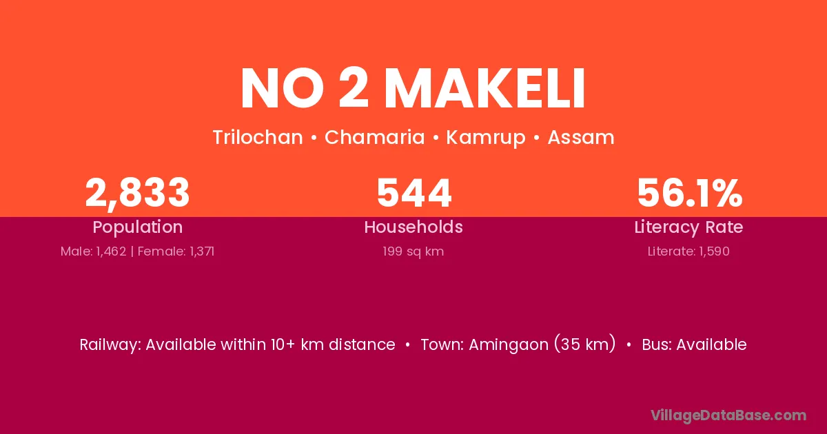 No 2 Makeli village has a total population of 2,833 people, of which 1,462 are males and 1,371 are females.