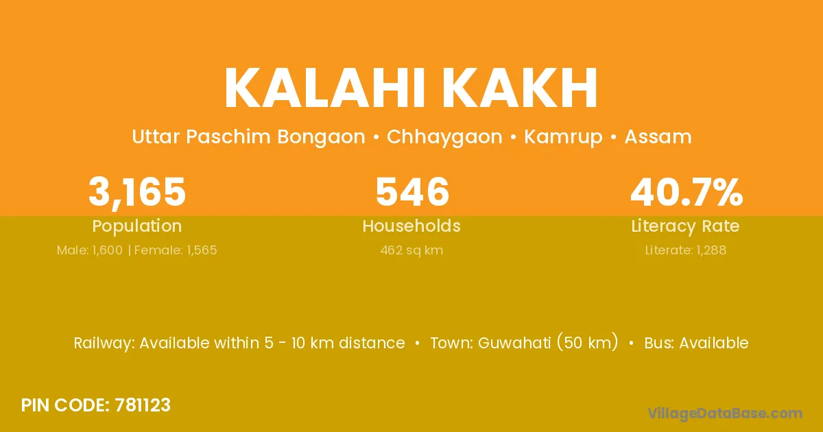Guwahati (50 km) is the nearest town to Kalahi Kakh village for major economic activities and is located approximately 50 km away.