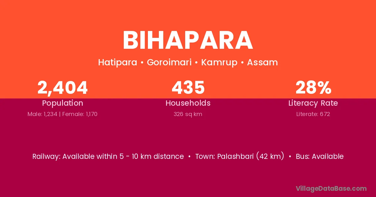 Palashbari (42 km) is the nearest town to Bihapara village for major economic activities and is located approximately 42 km away.