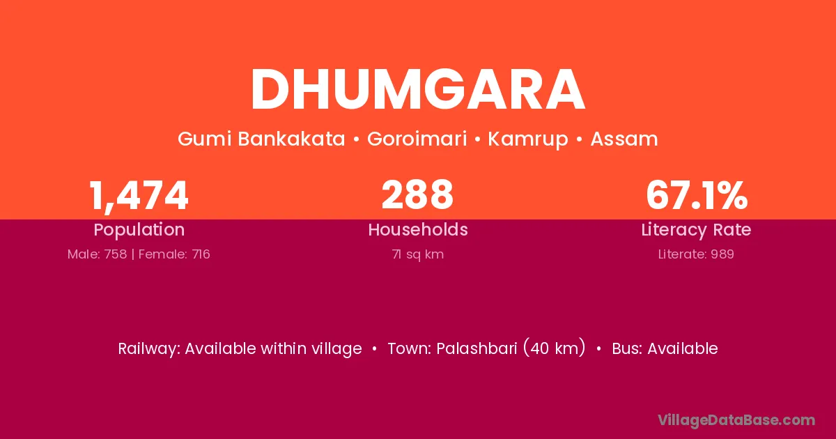 Dhumgara village is located in the Goroimari Subdivision of the Kamrup district in Assam .