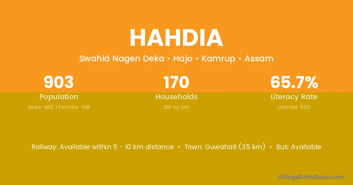 Guwahati (35 km) is the nearest town to Hahdia village for major economic activities and is located approximately 35 km away.