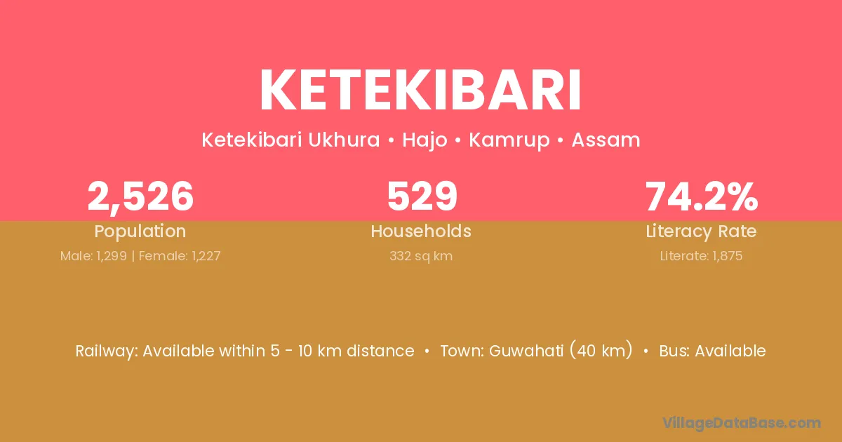 Guwahati (40 km) is the nearest town to Ketekibari village for major economic activities and is located approximately 40 km away.