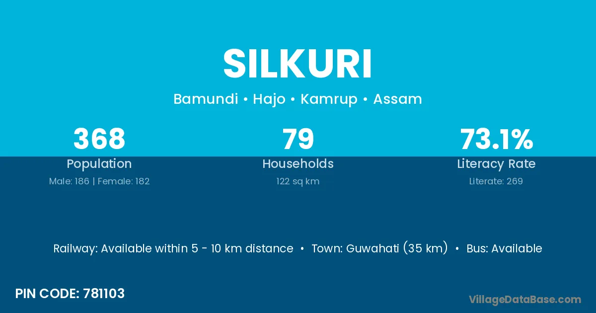 Guwahati (35 km) is the nearest town to Silkuri village for major economic activities and is located approximately 35 km away.