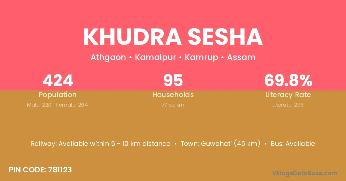 Guwahati (45 km) is the nearest town to Khudra Sesha village for major economic activities and is located approximately 45 km away.