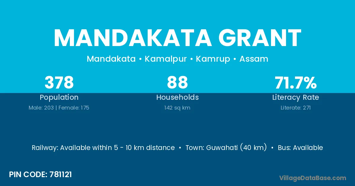Guwahati (40 km) is the nearest town to Mandakata Grant village for major economic activities and is located approximately 40 km away.