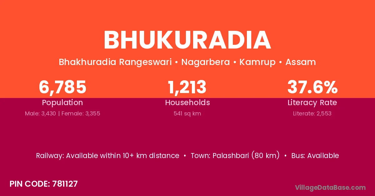 Palashbari (80 km) is the nearest town to Bhukuradia village for major economic activities and is located approximately 80 km away.