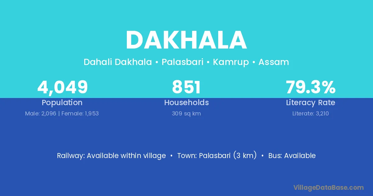 Palasbari (3 km) is the nearest town to Dakhala village for major economic activities and is located approximately 3 km away.