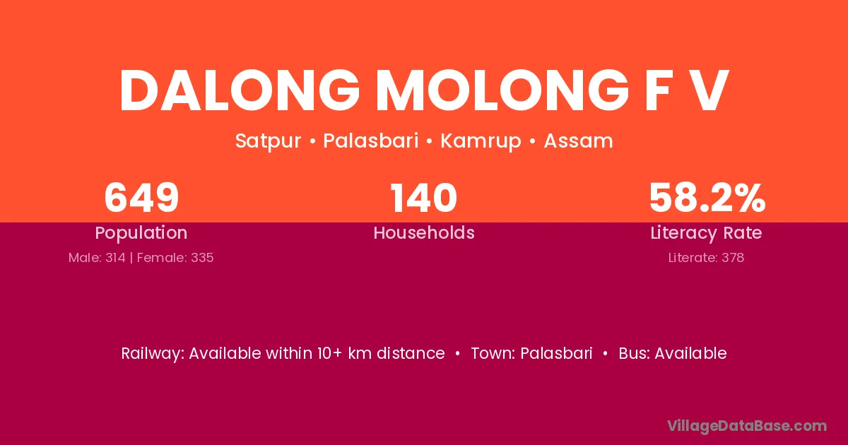 Palasbari is the nearest town to Dalong Molong F V village for major economic activities