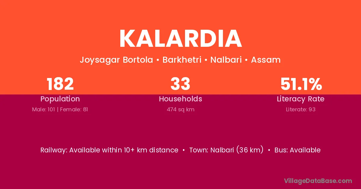 Palasbari is the nearest town to Kalardia village for major economic activities