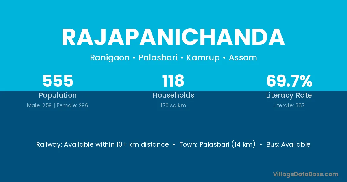 Palasbari (14 km) is the nearest town to Rajapanichanda village for major economic activities and is located approximately 14 km away.