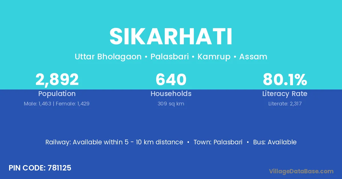 Palasbari is the nearest town to Sikarhati village for major economic activities